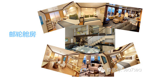 邮轮舱房分为内舱房、海景房、阳台房、套房,有些船更有LOFT等房型可供选择。整体的设施和格局和我们在陆地的五星级酒店是一样的,只是缩小版。