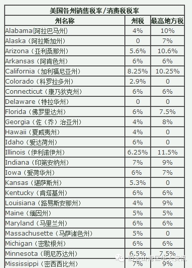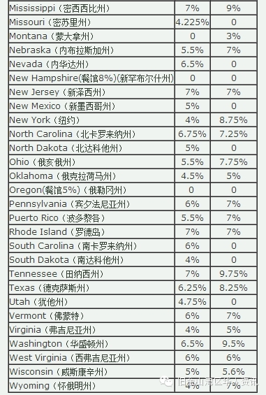 5. 各州消费税税率表